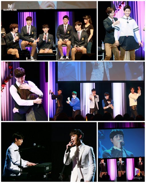 서프라이즈는 국내에서도 최초로 선보인 ‘배우 그룹’의 소개와 함께 데뷔작 드라마툰 ‘방과 후 복불복‘의 OST인 ‘Hey U come on’으로 공연의 오프닝을 열었다. 이날 무대에서는 첫 싱글 타이틀곡 ‘From my heart’와 더불어 수록곡 ‘Jump’이 외에도 ‘How deep is your love’, ‘밤 하늘 저편’, ‘별’ 등 총 7곡의 라이브 무대를 선보이며 팬들의 뜨거운 환호를 끌어냈다.