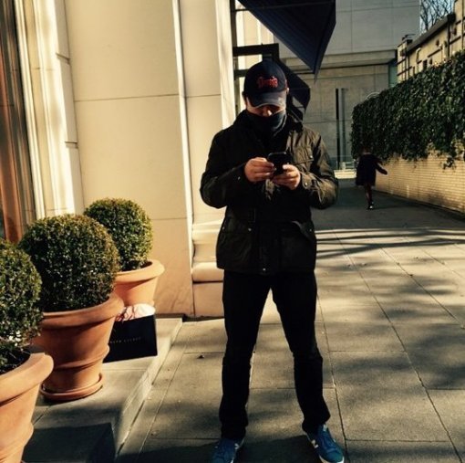 공개된 사진에는 모자와 마스크로 얼굴을 가린 채 길가에 서 있는 김구라의 모습이 담겨 있다.