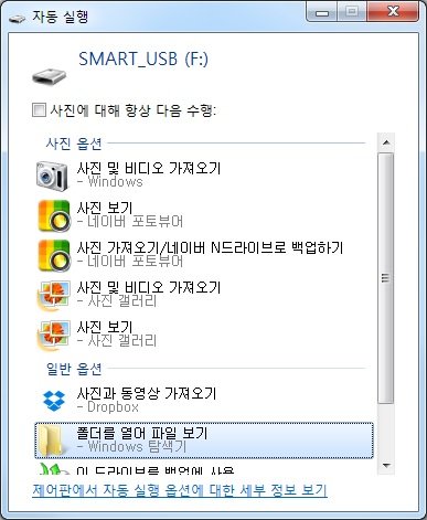 PC에 USB를 꽂으면, PC가 USB를 인식할 것이다. USB가 자동 실행되면 ‘폴더를 열어 파일 보기’를 한다.