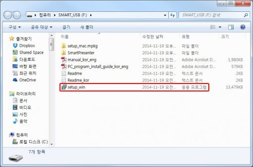 USB 내부를 살펴보면 PDF로 된 사용설명서 등 다양한 파일들이 담겨 있다. 그 중에서 ‘setup_win’이라는 설치 파일을 클릭, PC에 설치한다.