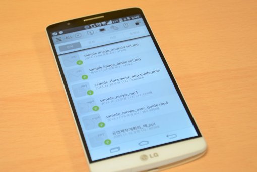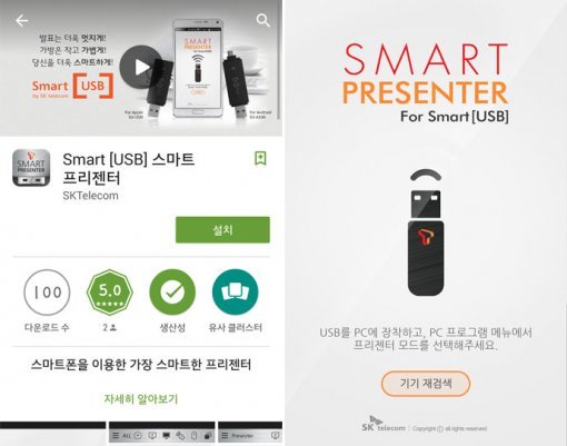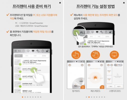한편, 안드로이드용 제품의 경우 스마트폰과 연결하면 USB에 저장된 자료들을 모두 확인할 수 있다. 이는 프레젠테이션 자료를 만들고 저장한 뒤, 발표 시작 전 스마트폰에서 간단하게 훑어보거나 이동하면서 발표 연습을 하기에 편리할 것으로 보인다.
