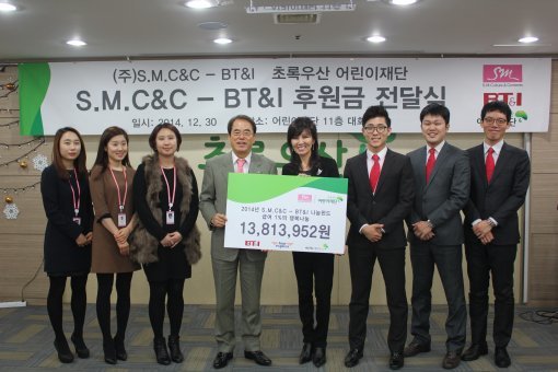 이날 전달식은 30일 오후 2시 무교동 초록우산 어린이재단 회의실에서 진행됐으며, SM C&C BT&I 전 직원이 매월 급여의 1%를 자발적으로 적립한 기금을 전달했다.