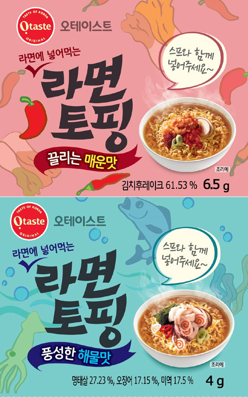 고객들은 간단하게 즐길 수 있는 컵라면뿐 아니라 집에서 끓여 먹는 봉지라면 조리에도 토핑을 추가해 자신이 좋아하는 맛을 낼 수 있다. 캠핑 등 야외 활동 시 요리를 할 때도 다양한 맛을 내는 조미료로 활용할 수 있다.