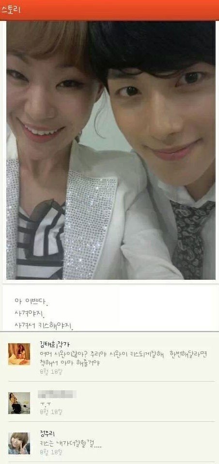 앞서 정주리는 지난 2012년 8월 자신의 카카오스토리에 임시완과 함께 촬영한 사진을 게재했고, "사귀어서 키스하고 싶다"라는 설명글을 남겼다.
