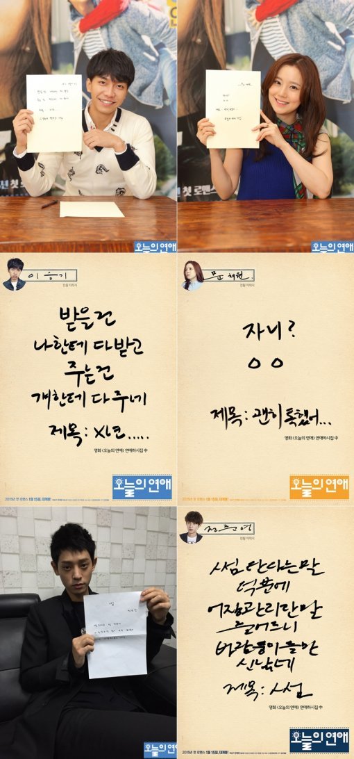 영화 ‘오늘의 연애’ 출연 배우들의 친필 자작시가 공개됐다.