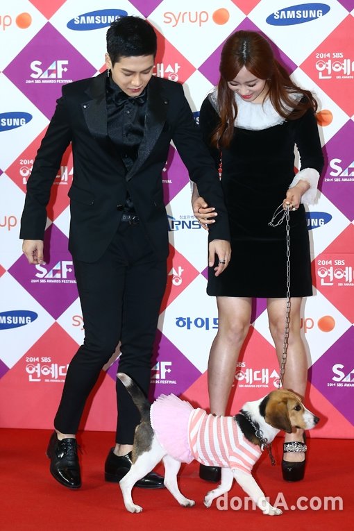 갓세븐의 멤버 잭승(왼쪽), 카라의 멤버 허영지가 30일 오후 서울시 강남구 코엑스에서 열린 ‘2014 SBS 연예대상’에 참석해 포토타임을 하고 있다.2014 SBS 연예대상은 ‘위로·격려·감사’를 키워드로 올 한해를 총 결산하는 자리다. 이날 SBS 연예대상의 MC는 ‘힐링캠프’를 이끌고 있는 이경규와 성유리와 올 한해 월드컵 중계로 많은 사랑을 받았던 배성재 아나운서가 맡았다.