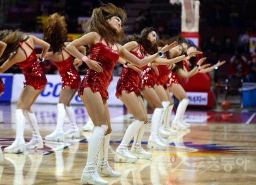 30일 안양실내체육관에서 열린 ‘2014-2015 KCC 프로농구’ 안양 KGC 인삼공사와 서울 삼성의 경기에서 KGC 치어리더가 화려한 공연을 선보이고 있다.