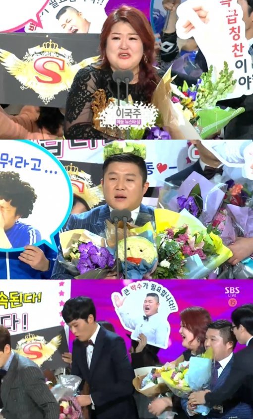 [SBS 연예대상] 이국주 “김준호 선배님, 우리 똘똘 뭉쳐 있다 힘내시라” 눈물의 소감