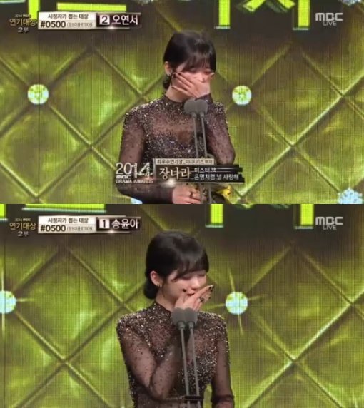 배우 장나라가 최우수 연기상을 받고 눈물을 쏟았다.