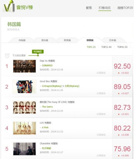 31일 현재 소나무의 ‘데자뷰’ 뮤직비디오는 중국 최대 동영상 사이트 ‘인위에타이’에서 한국 뮤직비디오 부분 조회수 1위를 기록하며 주목받고 있다. 이는 지드래곤과 태양의 ‘굿보이’, 에이핑크의 ‘러브’ 등을 재치고 얻은 순위로 그 의미가 남다르다.