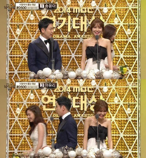 '2014 MBC 연기대상'이 생방송으로 진행되는 가운데 배우 고성희가 수상 후 MC석에 난입하는 해프닝이 벌어졌다.