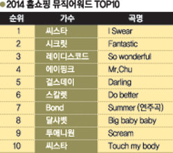 2014년 한해 홈쇼핑에서 걸그룹의 노래가 가장 많이 흘러나온 것으로 나타났다. GS샵이 2014년 1∼12월 홈쇼핑 채널에 삽입된 배경음악 1만여 곡의 방송횟수를 조사해 발표한 ‘2014 홈쇼핑 뮤직어워드’에서 씨스타의 ‘I Swear’가 1위를 차지했다. 씨스타는 이로써 2010년 데뷔곡 ‘PUSH PUSH’를 시작으로 ‘니까짓게’, ‘Loving you’ 등으로 5년 연속 홈쇼핑 뮤직어워드 톱10에 이름을 올렸다. 특히 올해는 10위 ‘Touch my body’까지 두 곡을 톱10에 올렸다.