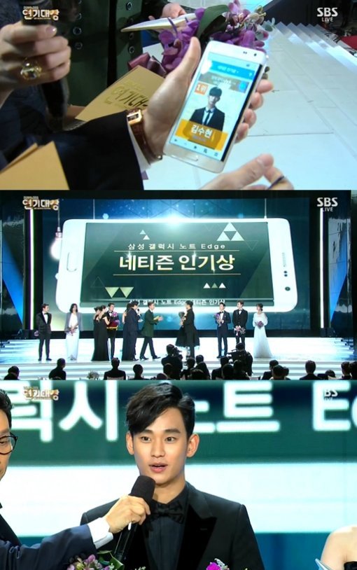 [SBS 연기대상] 김수현, 네티즌 인기상… 현재 2관왕