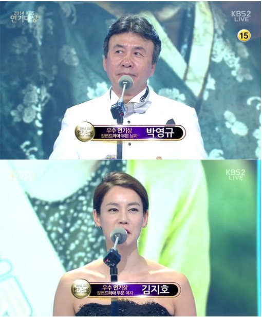 박영규, 김상경, 김지호가 장편드라마 부문 우수연기상을 수상했다.