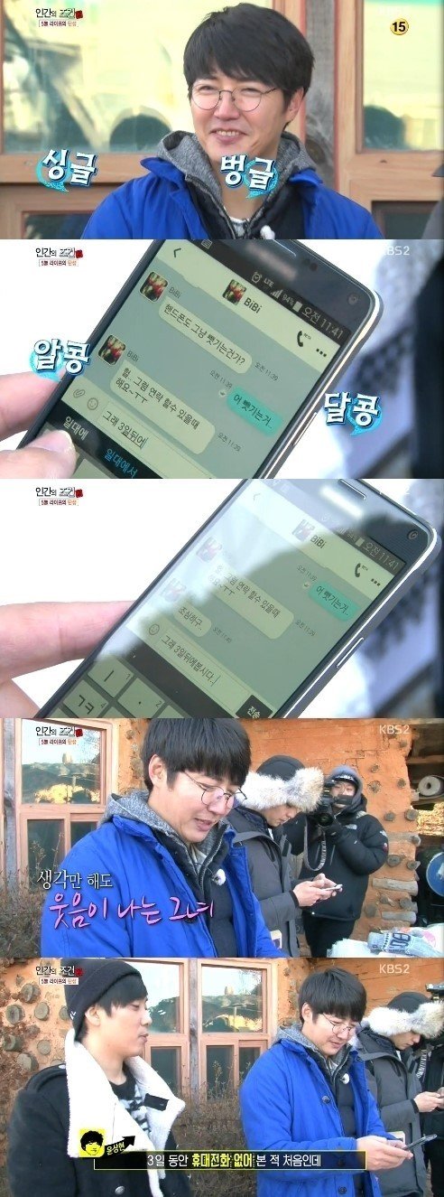 이날 윤상현은 제작진에게 휴대폰을 맡기기 전 마지막으로 메이비와 연락을 나눴고, 이를 본 은지원은 “휴대전화로 뭐 많이 하나?”라고 물었다.