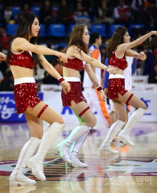 4일 잠실학생체육관에서 열린 2014-2015 프로농구 서울SK 대 인천전자랜드 경기에서 치어리더가 응원을 펼치고 있다.