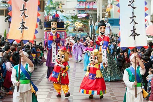 퍼레이드는 흥겨운 우리 가락이 울려 퍼지는 가운데 길이 6m, 높이 4m의 초대형 가마를 탄 신랑과 신부가 행렬을 이끌고 귀여운 캐릭터로 분장한 사물놀이패가 함께 한다. 움직이는 장승 등 우리 전통문화의 여러 상징들이 테마파크 퍼레이드 특유의 축제 분위기와 어울려 등장한다. 롯데월드는 새 퍼레이드 론칭을 기념해 31일까지 기념 이벤트를 실시한다.