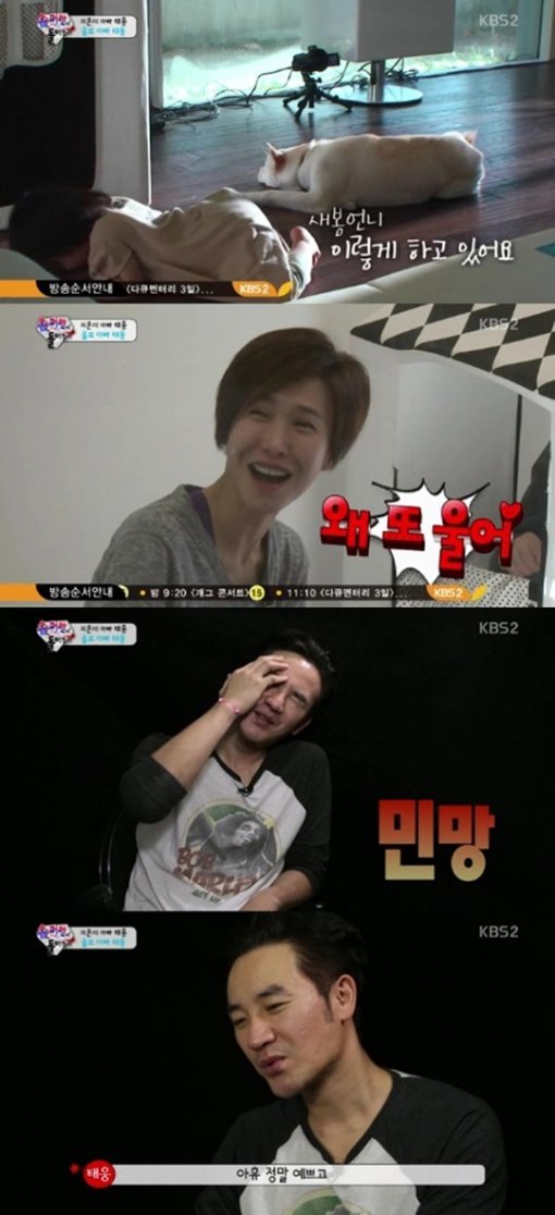 특히 이날 엄태웅과 지온은 산 속에 지은 새 집 구경을 하며 행복한 모습을 보였다. 엄태웅은 딸 지온이 강아지 새봄이를 따라하는 것을 보며 눈물을 보여 눈길을 끌었다. 남편의 뜬금없는 눈물에 아내 윤혜진은 "울 줄 알았지만 벌써 눈물을 보일 줄은 몰랐다"며 "대체 왜 우는 것이냐"고 물어 웃음을 자아냈다.