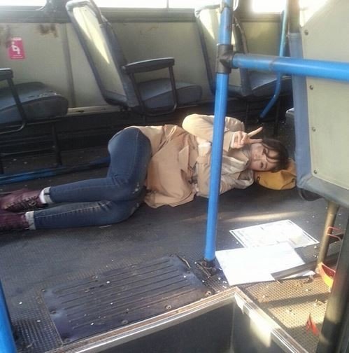 공개된 사진 속 최희는 버스 통로에 누워 ‘브이(V)’ 포즈를 취하고 있는 모습이다.