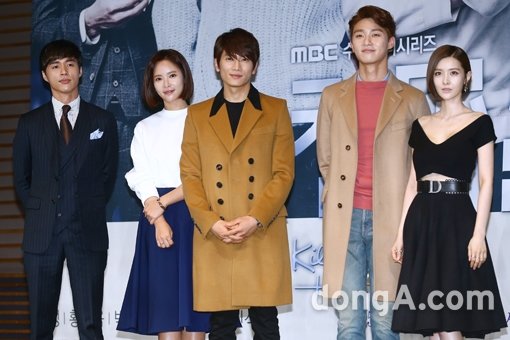 배우 오민석(왼쪽부터), 황정음, 지성, 박서준, 김유리가 5일 오후 서울 마포구 MBC미디어센터에서 열린 MBC 새 수목드라마 ‘킬미 힐미’ 제작발표회에서 포토타임을 하고 있다.