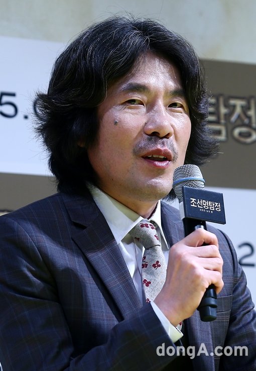 배우 오달수가 5일 오후 서울 강남구 압구정CGV에서 열린 영화 '조선명탐정: 사라진 놉의 딸’ 제작발표회에서 질문에 답하고 있다.