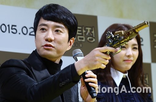 배우 김명민이 5일 오후 서울 강남구 압구정CGV에서 열린 영화 '조선명탐정: 사라진 놉의 딸’ 제작발표회에서 질문에 답하고 있다.