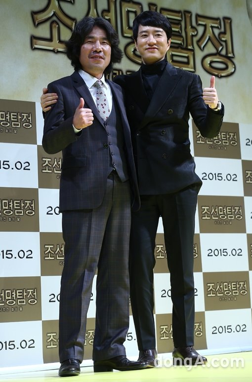 배우 오달수(왼쪽), 김명민이 5일 오후 서울 강남구 압구정CGV에서 열린 영화 '조선명탐정: 사라진 놉의 딸’ 제작발표회에서 포토타임을 하고 있다.