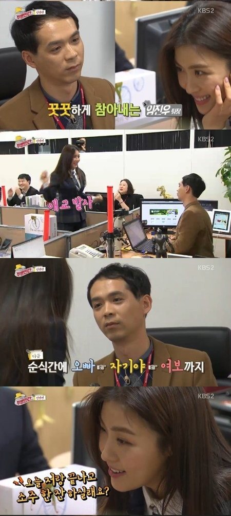 계속된 애교에도 팀장이 반응이 없자 하지원은 “오늘 저랑 끝나고 소주 한 잔 하실래요?”라며 초강수를 던졌다. 결국 남자 팀장은 하지원의 한 마디에 KO패 하고 말았다.
