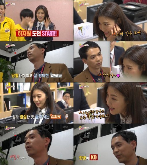 또한 하지원은 공략 대상인 팀장의 반응을 얻기 위해 꽃받침 포즈에 “오빠”라고 불러 환호를 불러왔다.