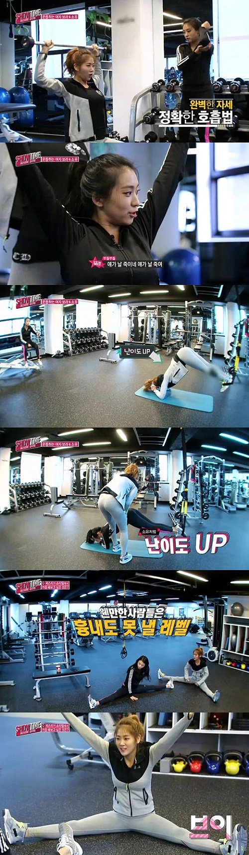 걸그룹 씨스타의 멤버 보라와 소유가 운동을 하는 모습이 ‘씨스타 쇼타임’에서 공개됐다.