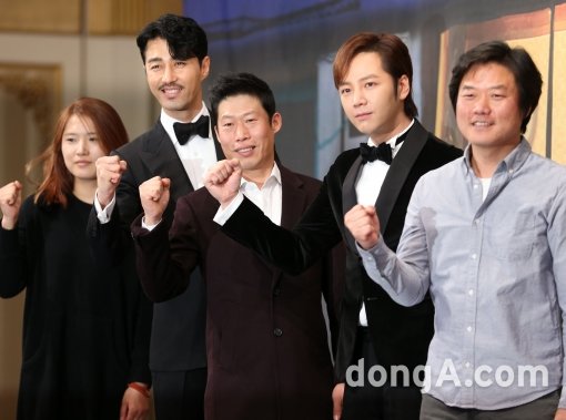 PD 신효정, 배우 유해진, 차승원, 장근석, PD 나영석(왼쪽부터)이 9일 오후 서울 강남구 임피리얼팰리스호텔에서 열린 tvN '삼시세끼' 제작발표회에 참석해 포토타임을 하고 있다.