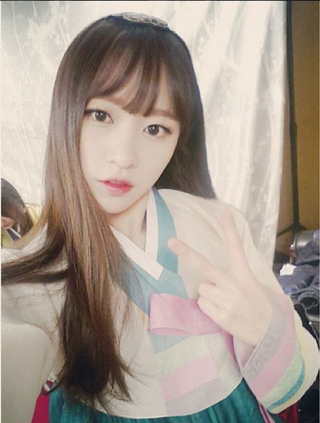 공개된 사진속 하니는 한복을 차려입은 모습으로, 브이를 그리며 기쁨을 만끼하고 있다.
