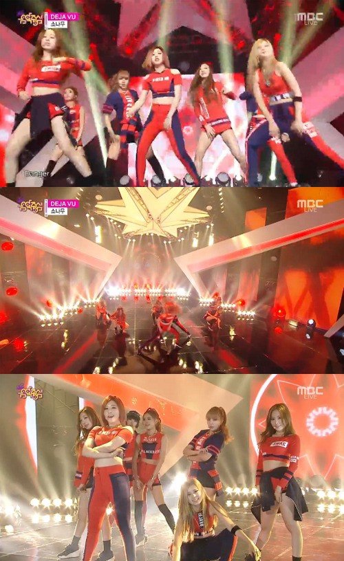 소나무는 10일 방송된 MBC TV 음악 프로그램 '쇼, 음악중심‘에 출연해 데뷔곡 데자뷰(DEJAVU)를 선보였다.