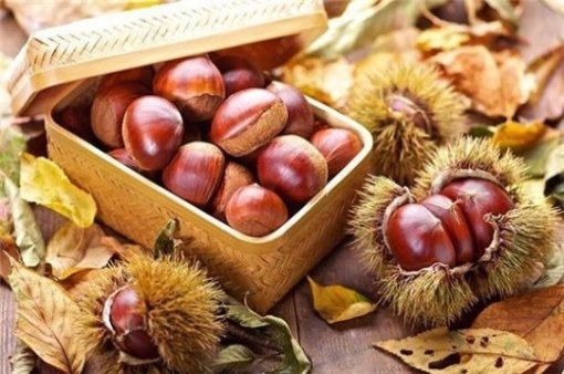 밤은 위장 기능 강화에 좋고 동의보감에는 밤이 배탈과 설사에 효험이 있다고 기록되어 있다.