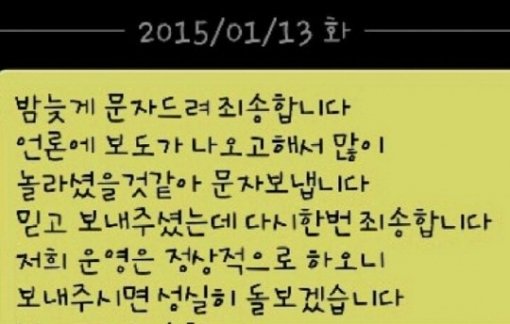 사건 이후 한 학부모의 SNS에 게재된 원장의 문자에는 “보도를 통해 놀라셨을 것 같다. 믿고 보내주셨는데 다시 한 번 죄송하다. 저희 운영은 정상적으로 하오니 보내주시면 성실히 돌보겠다”는 내용이 담겨 있어 사태 파악을 제대로 하지 못한 모습이다.