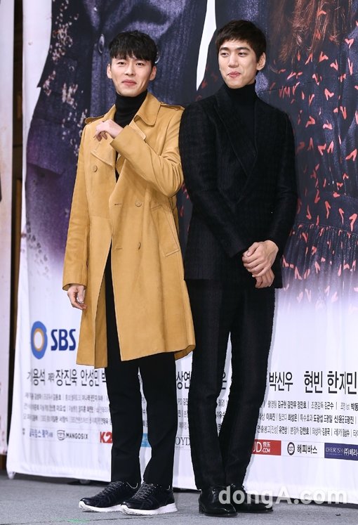 배우 현빈(왼쪽), 성준이 15일 오후 서울 강남구 임피리얼팰리스호텔에서 진행된 SBS 새 수목드라마 ‘하이드 지킬, 나’ 제작발표회에 참석해 포토타임을 하고 있다.