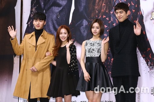 배우 현빈(왼쪽부터), 한지민, 혜리, 성준이 15일 오후 서울 강남구 임피리얼팰리스호텔에서 진행된 SBS 새 수목드라마 ‘하이드 지킬, 나’ 제작발표회에 참석해 포토타임을 하고 있다.