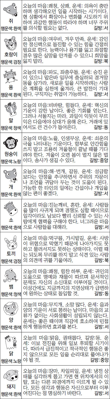 금일복권, 주식, 부동산매입 행운의 띠: 소,뱀,닭(토요일:호랑이,말,개)