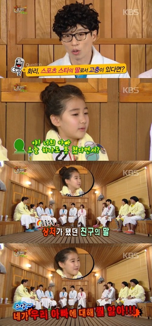 이날 홍화리는 “저랑 제일 친한 남자애가 ‘야 너희 아빠 오늘 하나도 못 쳤다면서? 니네 아빠 때문에 졌잖아’라고 말해 성처 받았던 적이 있다”고 털어놨다.