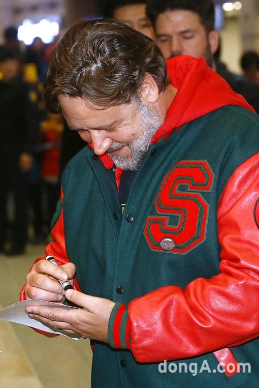 할리우드 배우 겸 감독 러셀 크로우가 17일 오후 인천국제공항을 통해 첫 내한했다.