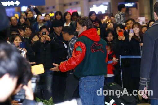 할리우드 배우 겸 감독 러셀 크로우가 17일 오후 인천국제공항을 통해 첫 내한했다.