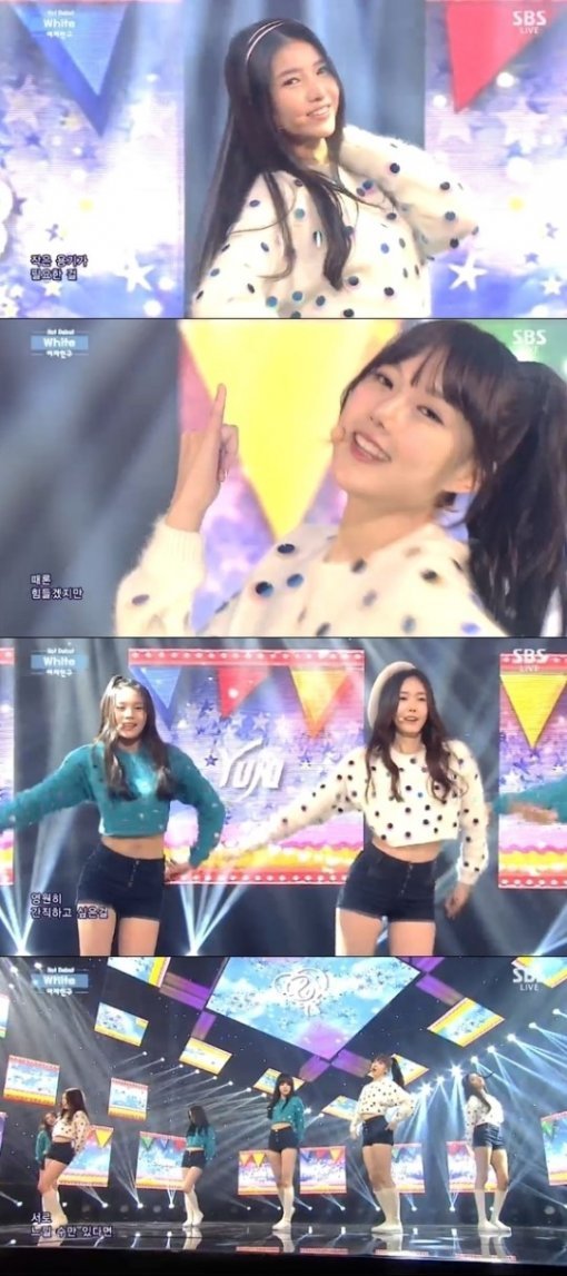 여자친구는 18일 방송된 SBS '인기가요'에서 데뷔곡 '유리구슬'을 열창하며 화려한 신고식을 치렀다.