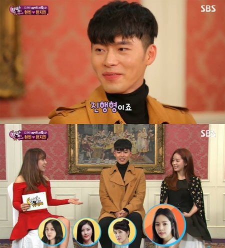 이날 현빈은 과거 “여배우 중 한지민이 가장 예쁘다”라는 발언에 대해 “예전에 그런 말을 했었다”라고 밝혔다. 이에 ‘한밤의 TV연예’ 리포터가 “과거형이냐, 현재진행형이냐”고 묻자, 현빈은 “진행형”이라며 웃어보였다.