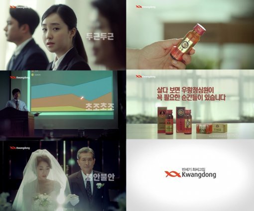 광동제약이 새롭게 선보이는 광고는 우황청심원을 찾게 되는 일상의 순간들을 재미있게 표현한 것이 특징이다. 면접을 보고 있는 취업준비생의 두근두근 떨리는 가슴, 딸의 결혼식에서 실수할까 걱정하는 아버지의 불안불안한 걸음, 중요한 프레젠테이션을 진행하는 직장인의 초조한 순간 등을 담아내 두근거림, 정신불안에 효과적인 광동우황청심원의 효능을 함축적으로 보여주고 있다.