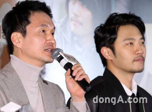 배우 장현성(왼쪽)과 진구가 22일 오후서울 성동구 왕십리CGV에서 열린 영화 '쎄시봉' 언론시사회에서 인사말을 하고 있다.