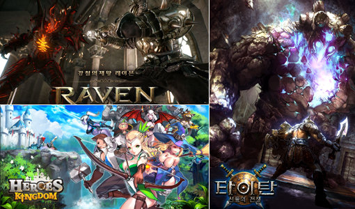 스마트폰의 성능이 발전하면서 PC에서나 가능하던 액션역할수행게임(RPG)의 경쟁이 모바일에서도 치열해지고 있다. 국내 주요 게임사들이 2월부터 대작 모바일 RPG를 선보인다. (왼쪽 위로부터 시계방향)넷마블게임즈의 블록버스터급 모바일 액션RPG ‘레이븐’, 그리스·로마신화를 재해석한 넥슨의 ‘타이탄’, 300여 종의 영웅 캐릭터가 등장하는 NHN엔터테인먼트의 ‘히어로즈 킹덤: 챔피언스 워’.