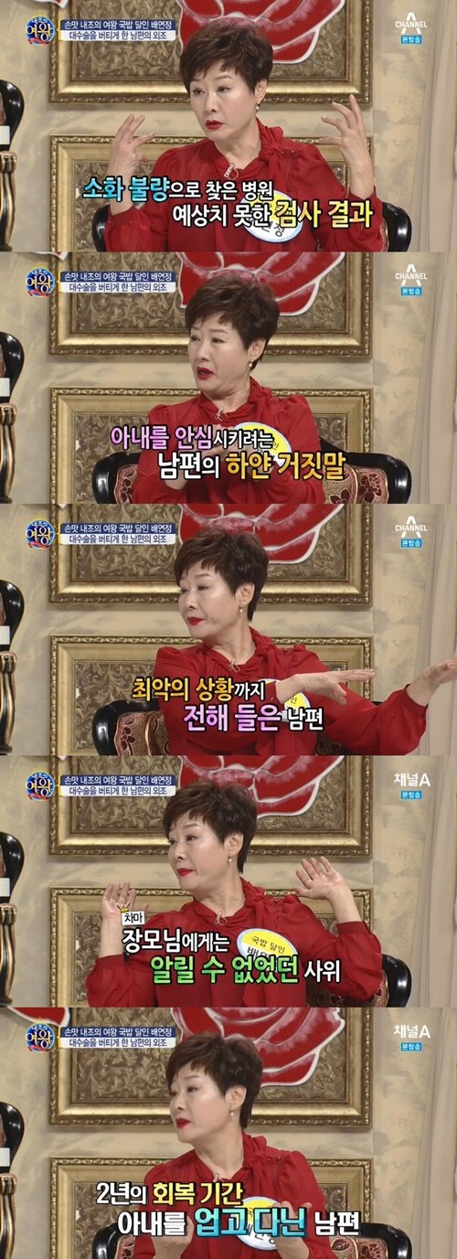 배연정은 24일 방송된 채널A ‘내조의 여왕’에서 과거 췌장암으로 위험했던 시절을 회상했다.