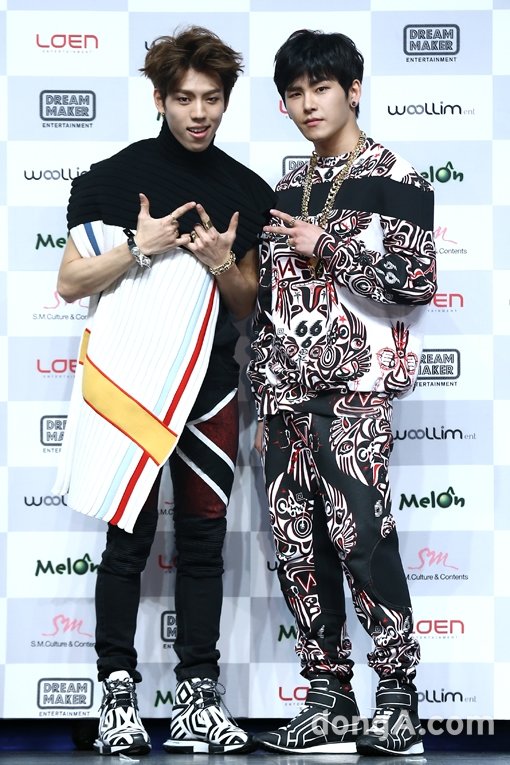 인피니트H(동우, 호야)가 26일 오후 서울 광진구 악스코리아에서 열린 새 앨범 ‘플라이 어게인’ 쇼케이스에서 멋진 포토타임을 하고 있다.