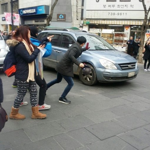 이 사진에는 하하가 지하철을 타고 이동하는 모습은 물론, 정준하가 덕수궁에 매표소 앞에 있는 모습과 유재석이 자동차를 제지하고 거리를 달리는 모습도 담겼다.