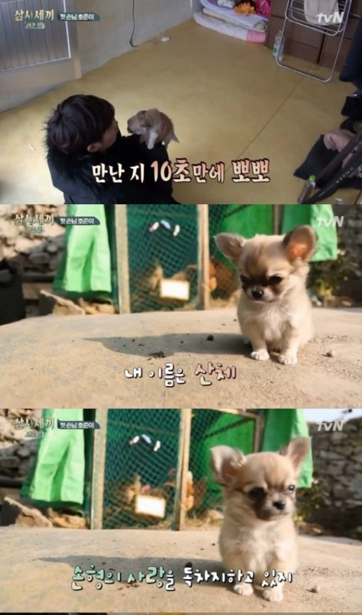 '삼시세끼' 강아지 산체가 배우 손호준의 마음을 빼앗아 눈길을 끌었다.